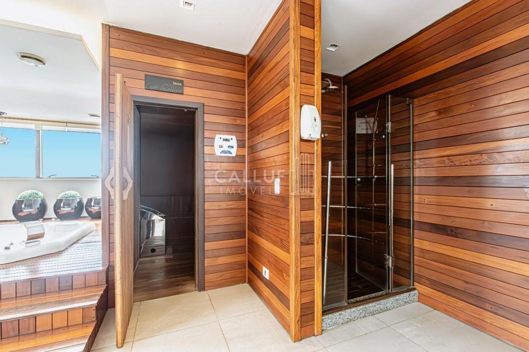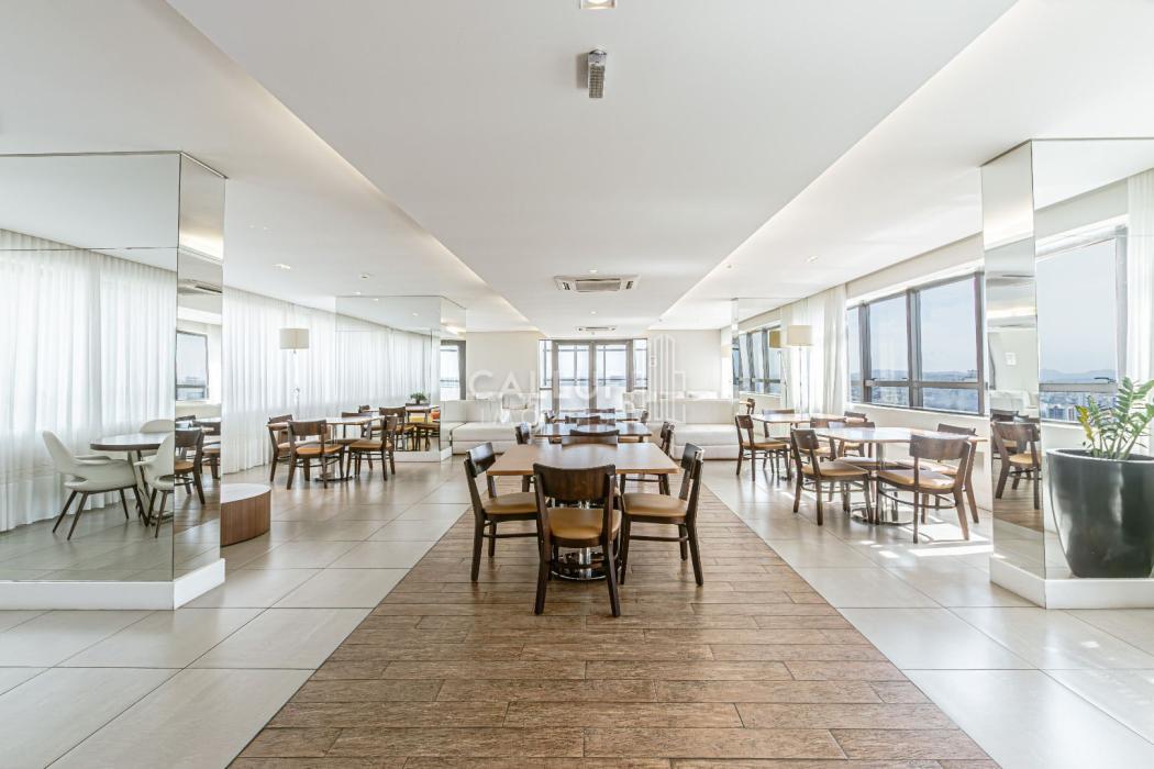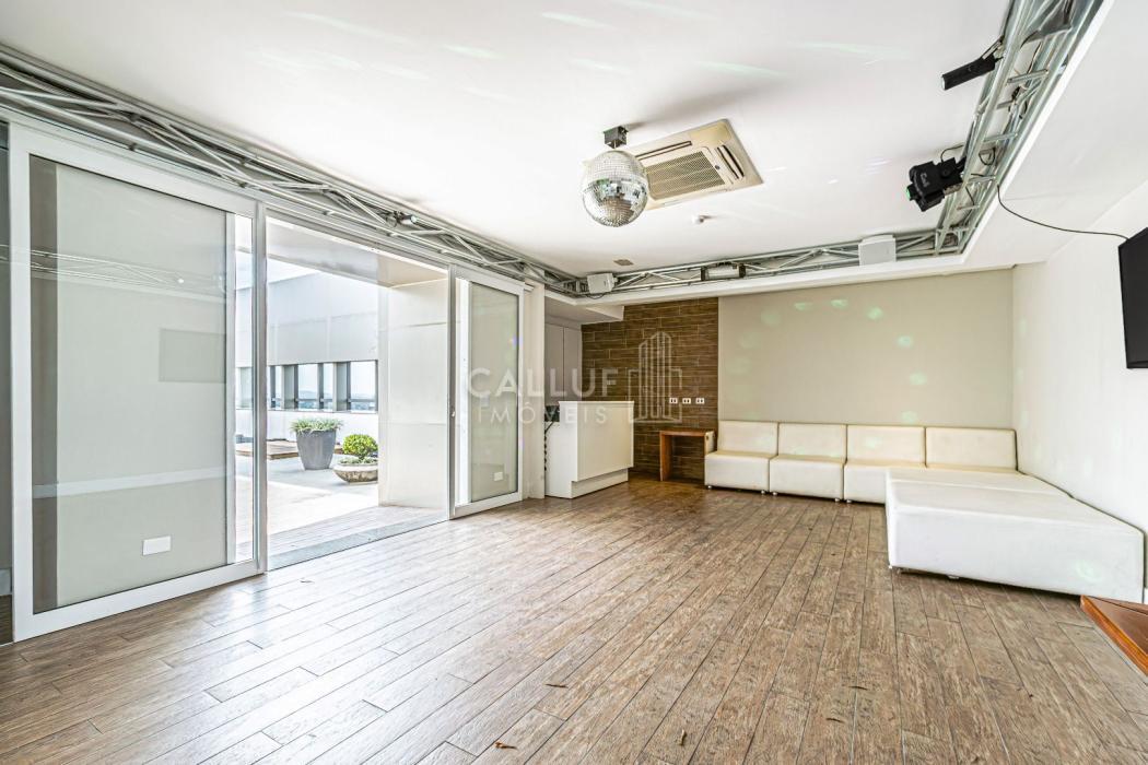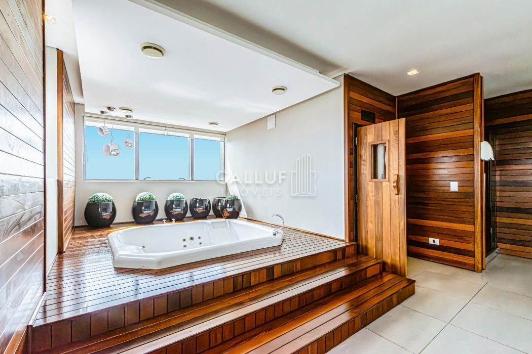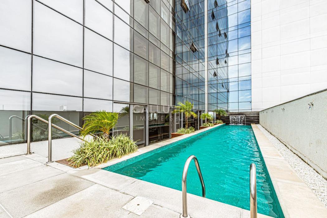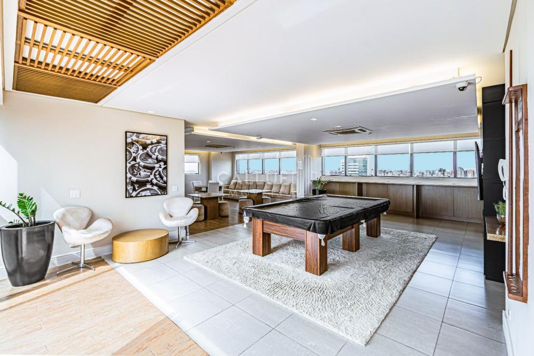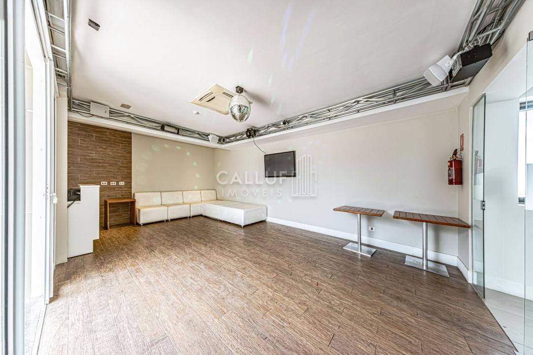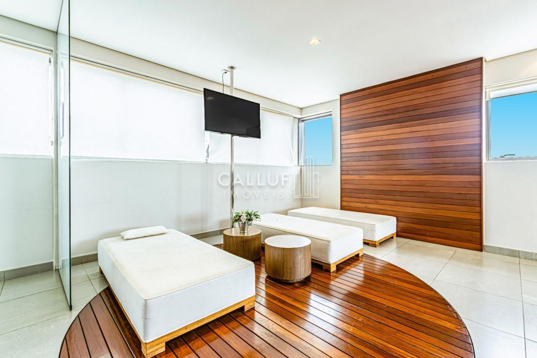 O condomínio possui churrasqueira, pista de dança, salão de festas com terraço, salão de jogos, spa, espaço mulher, sauna, espaço fitness, piscina com raia e lounge externo com pira.