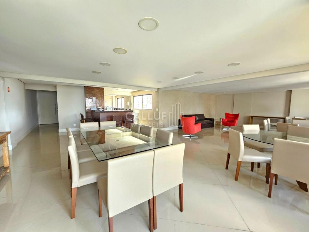 Imóvel com metragem útil de 114m² contendo sala de estar e jantar, lavabo, sacada com churrasqueia e possui ar-condicionado. São 3 quartos espaçosos sendo um com suite e closet, todos eles com venezianas blackout,