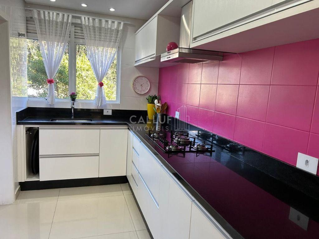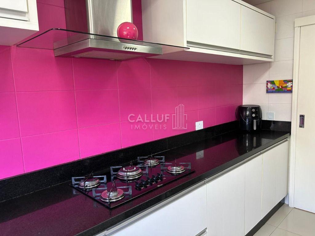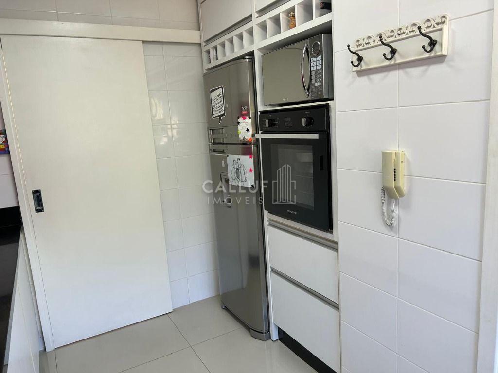 Cozinha com balcão em granito em toda sua extensão da parede, armários planejados.