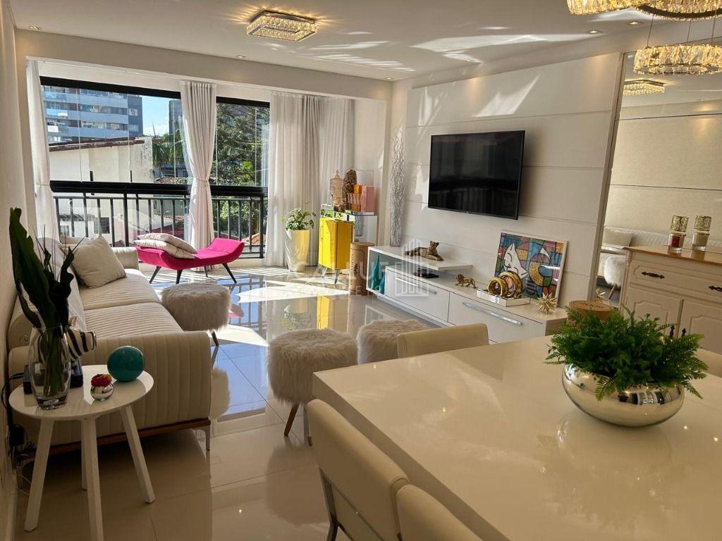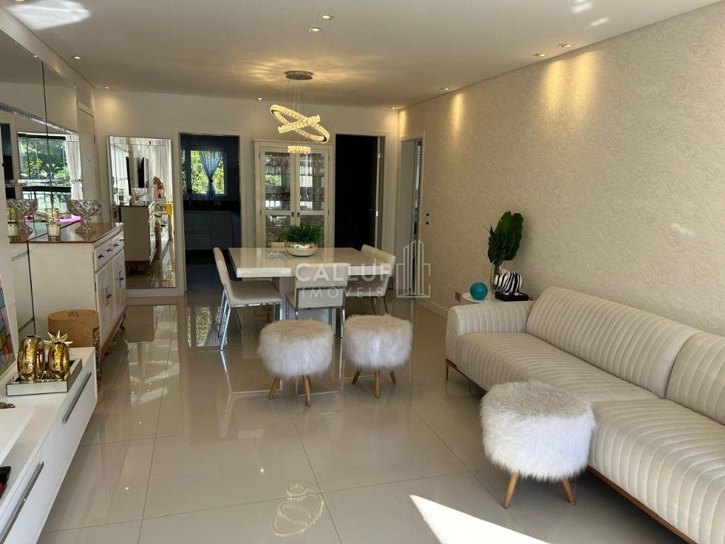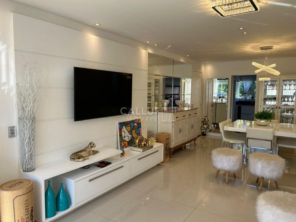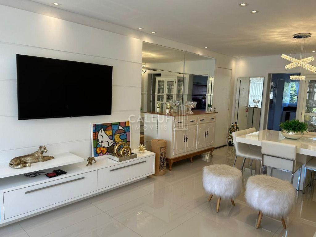 Sala para 02 ambientes integrados, estar e Jantar com móvel tipo Rack.
