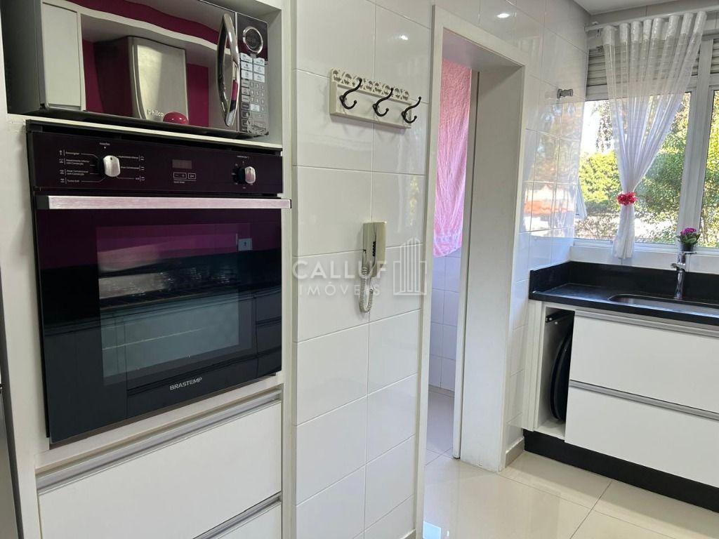 Piso em porcelanato na sala, cozinha, área de serviço e banheiros.
