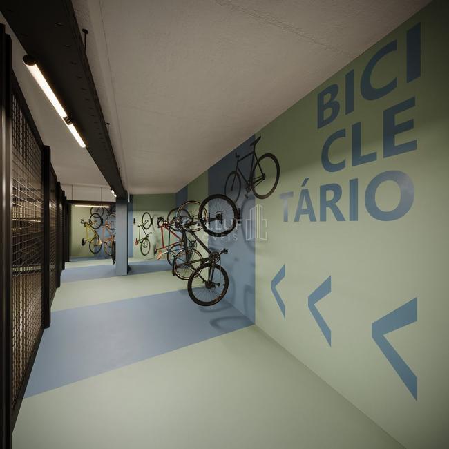 - Bicicletário com bomba e tomada para carregamento de bicicleta elétrica