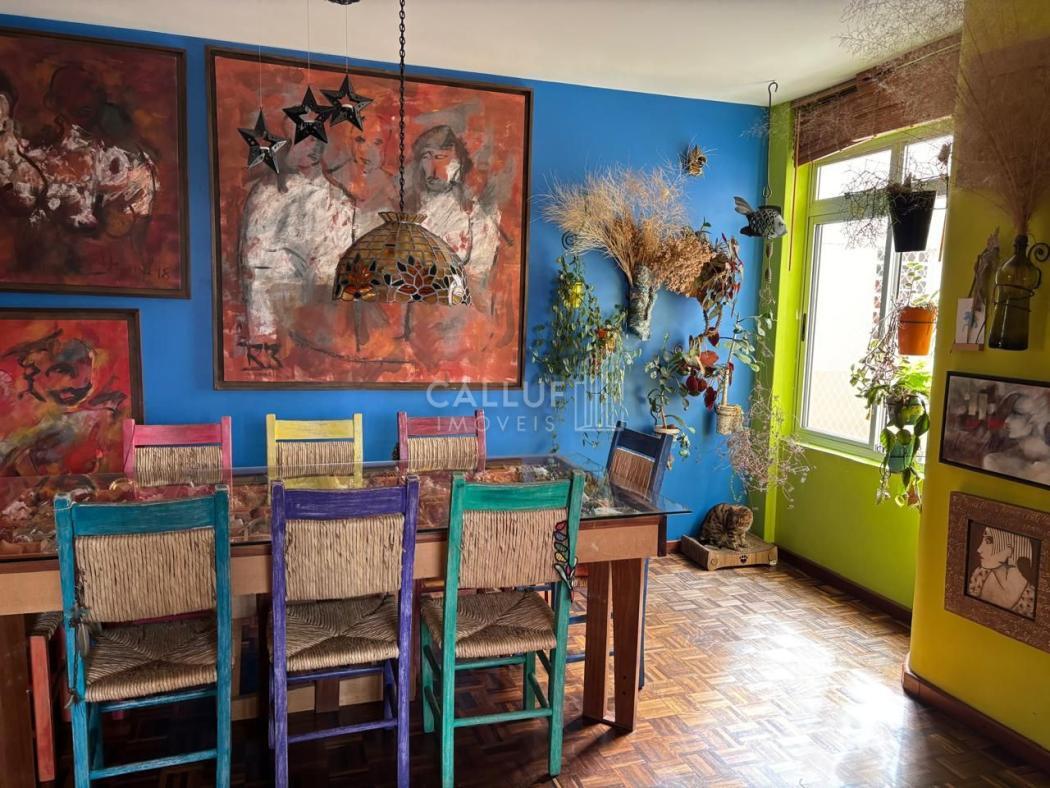 Um apartamento agradável, confortável, com uma planta excelente, muito espaço a começar pela cozinha que é simplesmente um ambiente iluminado e refrescante, pois conta com 2 janelões em ambos os lados, coisa rara nas construções atuais. Nesta cozinha há bancadas em granito que circundam o ambiente, armários planejados, churrasqueira a carvão. O apartamento atualmente está configurado com 2 quartos, pois o terceiro quarto está adaptado coo ateliê para o trabalho da artesã que lá reside; entretanto é totalmente reversível para a configuração original de 3 quartos.