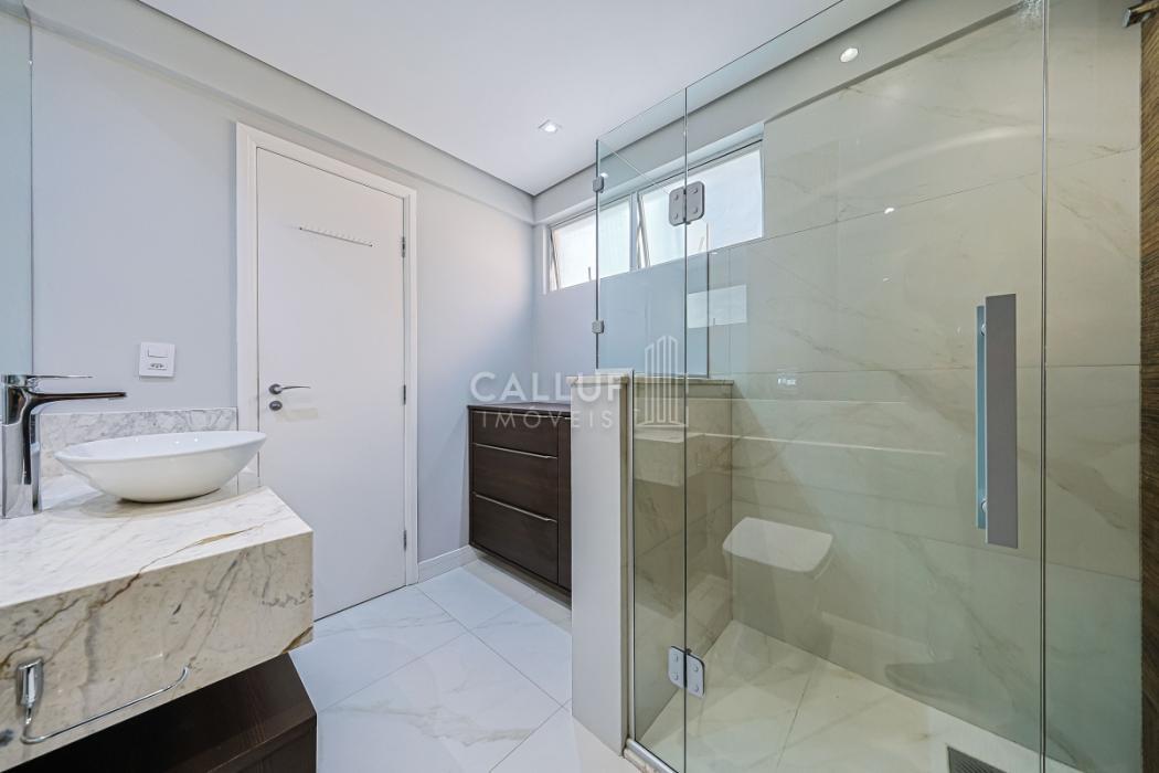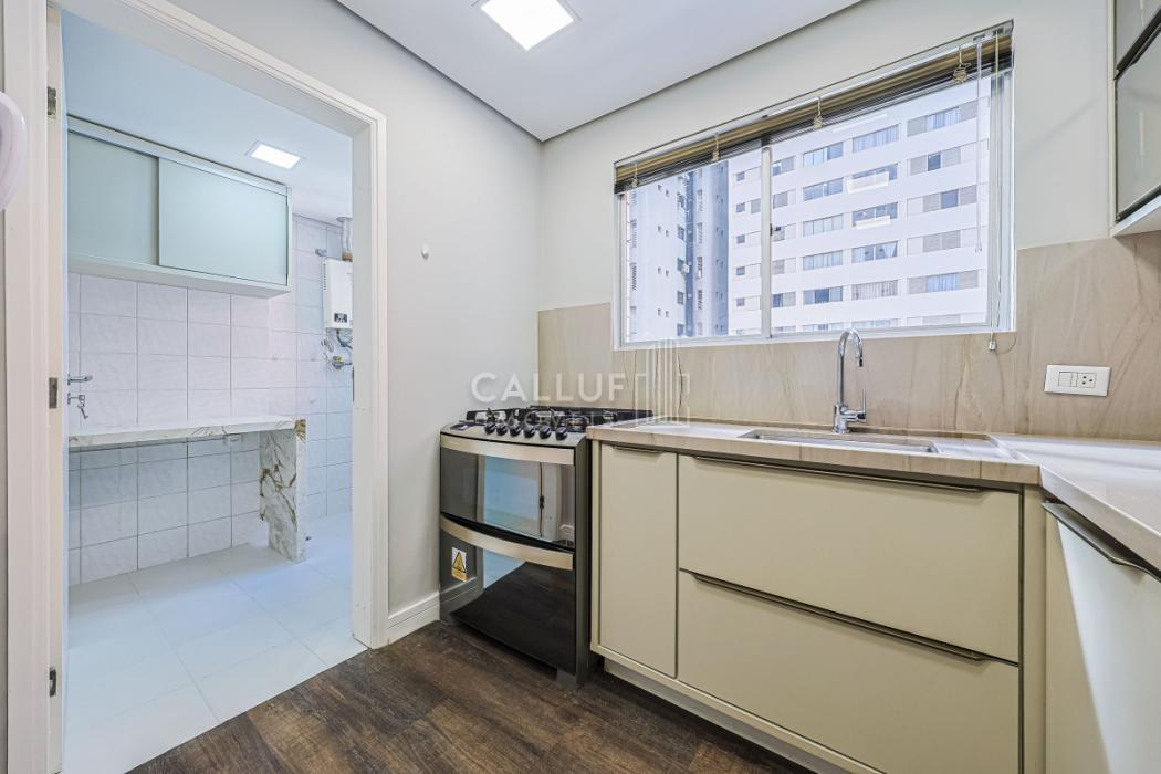 Apartamento todo reformado, espaçoso, possui sala de estar e sala de jantar, num ambiente integrado e aconchegante, com ar condicionado. Sacada com churrasqueira à carvão, 3 quartos sendo uma suíte, todos com armários, e ar condicionado. Banheiros finamente decorados com mármore branco Paraná Calacata premium (Michelângelo) com box blindex, chuveiro à gás, com armários planejados, e piso em porcelanato Portinari e metais da Docol. Cozinha e churrasqueira com acabamentos em quartzito Desert White que suporta temperaturas mais quentes, e resistente a manchas, blacksplash (mosaico), da linha metal da Porcelanosa, móveis planejados, fogão, lavanderia com armário planejado e banheiro completo de empregada. Piso vinílico de alta qualidade, importado da Casa Nova Decorações. Uma vaga de garagem no subsolo 2, número 69. Posição: Fundos.