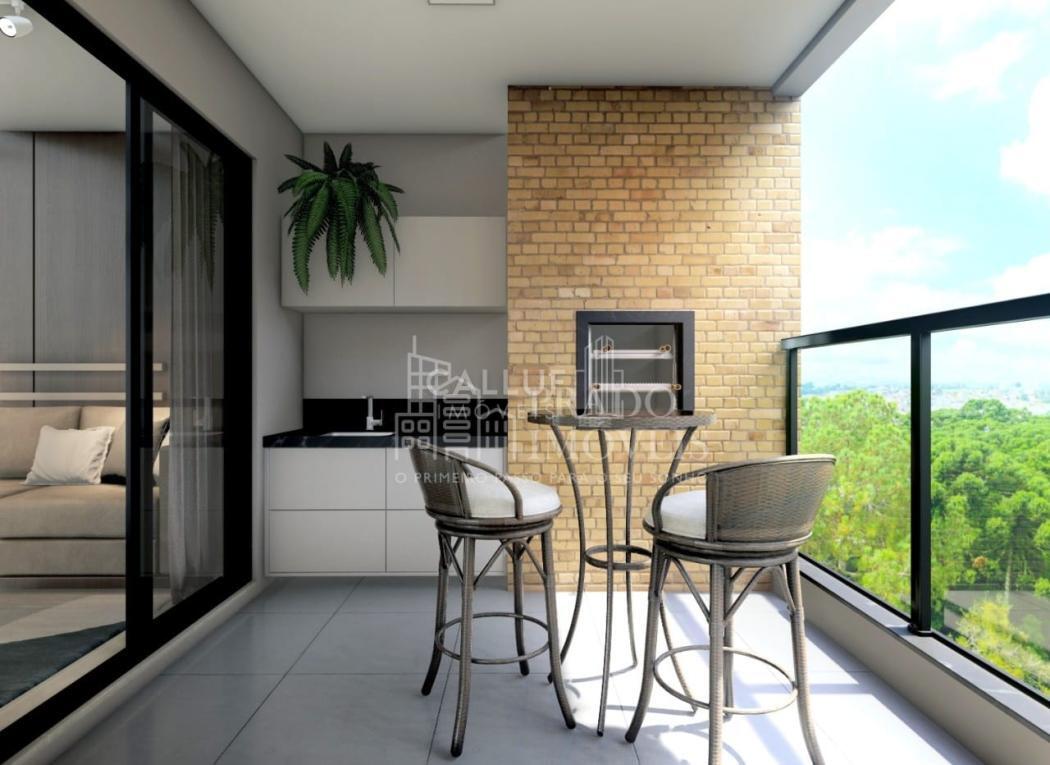 Ampla sacada com churrasqueira a carvão, forno de pizza e pia de apoio