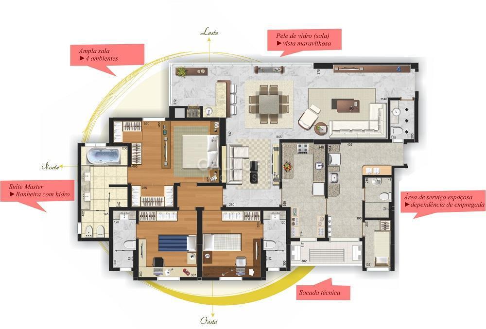 Apartamento com 176,38m² privativos com 3 suítes e 2 vagas de garagem.