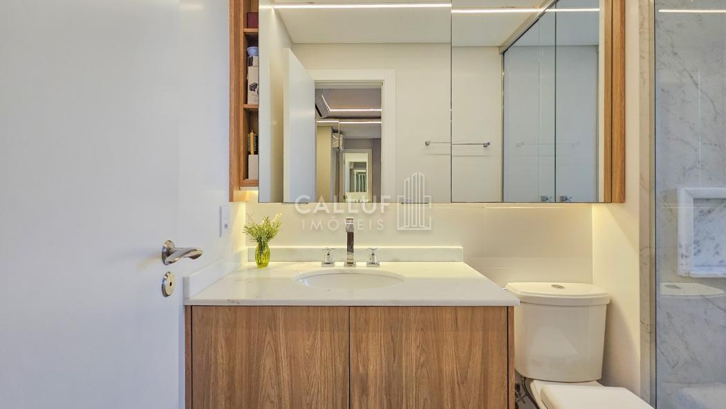 O apartamento possui alguns diferencias, como: churrasqueira a carvão na varanda; fechadura eletrônica por senha; central de ar-condicionado com saídas na sala de estar e em todos os dormitórios; banheira na suíte; vagas de garagem livre; e todos os móveis planejados pelo Griff Arquitetura.
