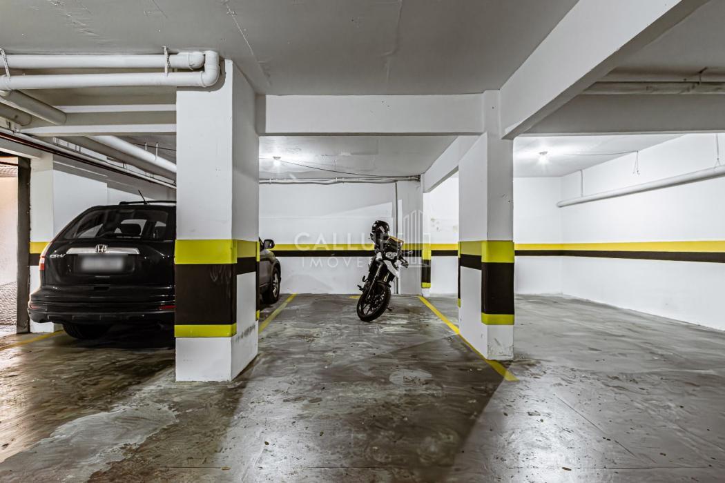 O apartamento conta com 2 vagas de garagem cobertas, demarcadas e livres.