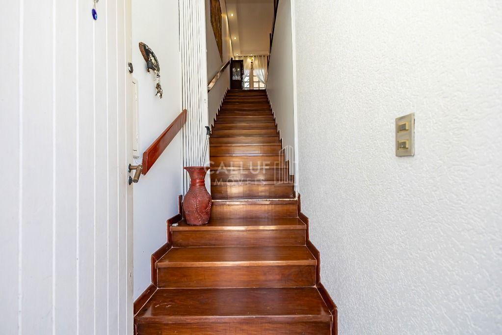 Piso em madeira peroba em todo o apartamento e na escada de entrada;