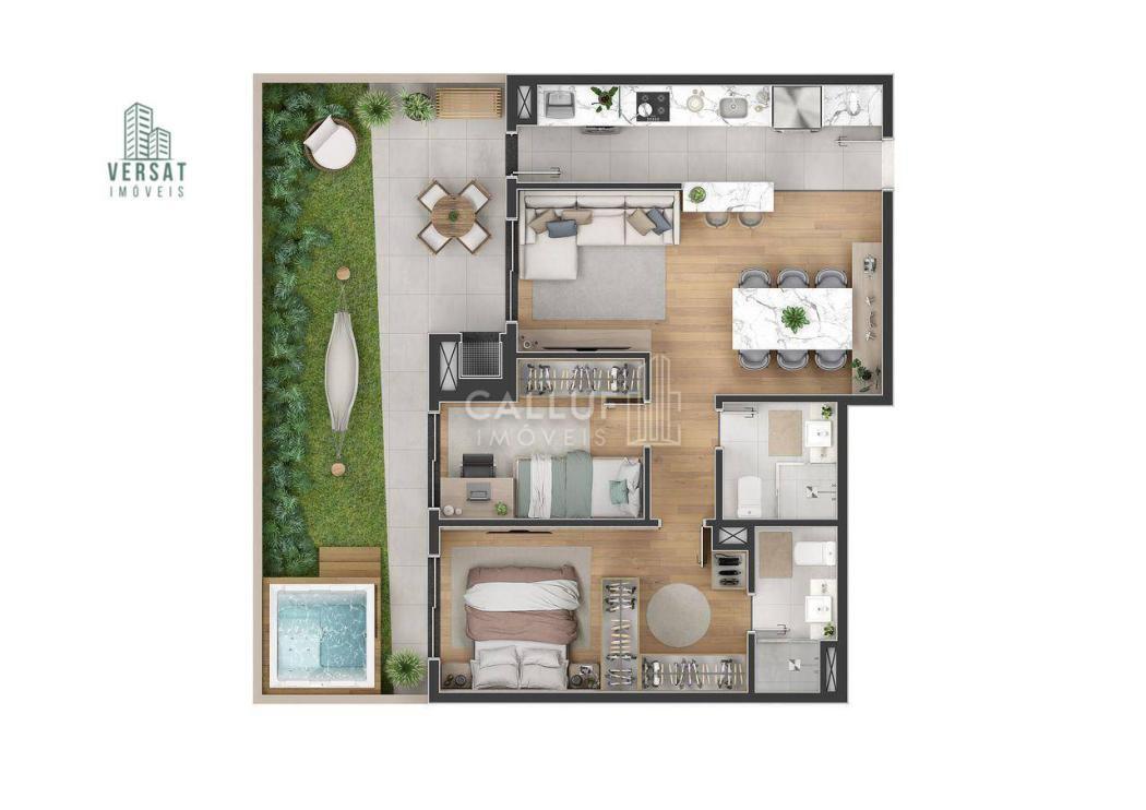 A praticidade de um edifício residencial com o clima de morar em uma casa. É assim que definimos nossas opções Garden. São opções de 2 dormitórios com 1 suíte e amplo espaço aberto, contando com churrasqueira.