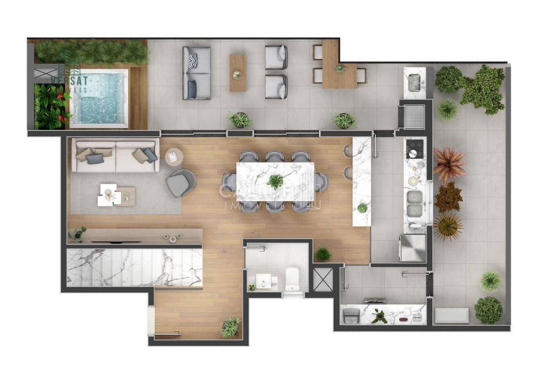 de estilos. Tudo isso com sala para 2 ambientes, cozinha