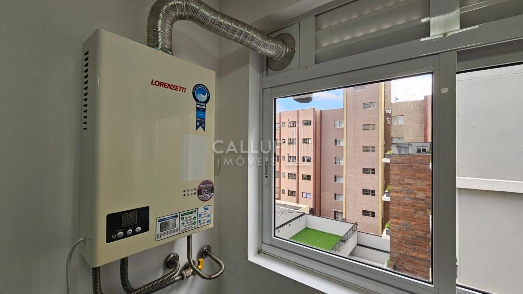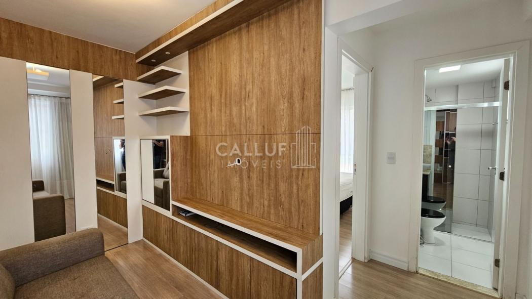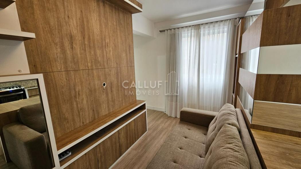Configuração: 1 quarto, 1 bwc social, sala, cozinha e área de serviço, janela para 2 faces, bem ventilado, com armários e nichos por todo o imóvel, muito bem planejado. Ficam todos os moveis planejados, e eletros. Tem fogão, exaustor, microondas, maquina lava e seca e aquecedor de passagem.