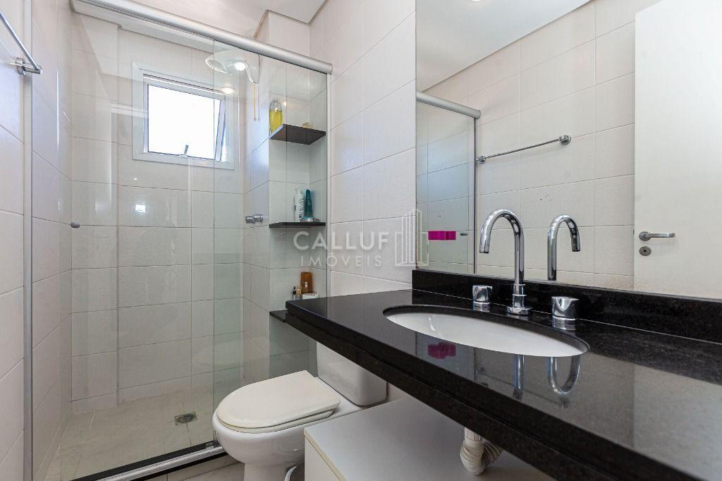 Banheiro da Suíte com armário e box Blindex e hidro.