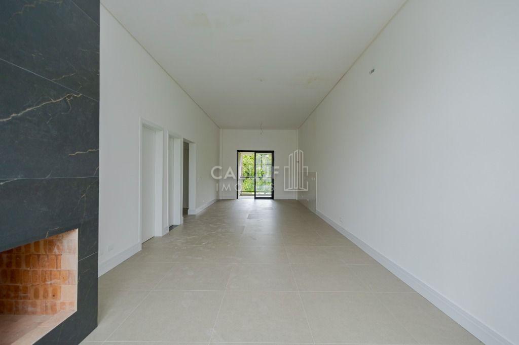 A sala ampla com lareira cria um ambiente acolhedor e aconchegante, além disso, o condomínio conta com uma série de comodidades para o seu lazer e bem-estar, como salão de festas, playground e quadra poliesportiva.