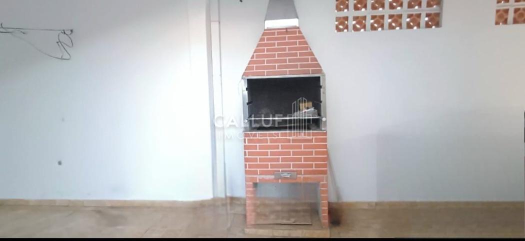 Churrasqueira a carvão em área espaçosa para reunião de familiares e amigos.