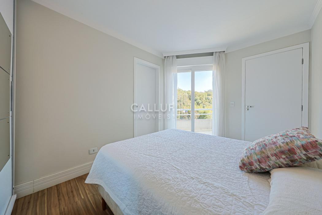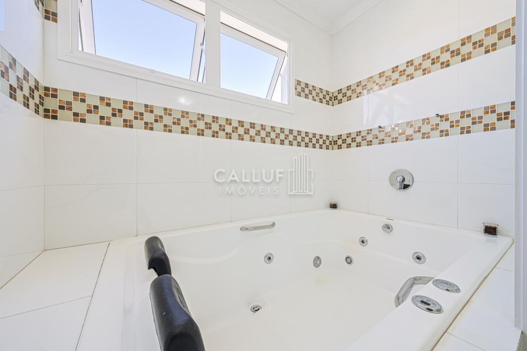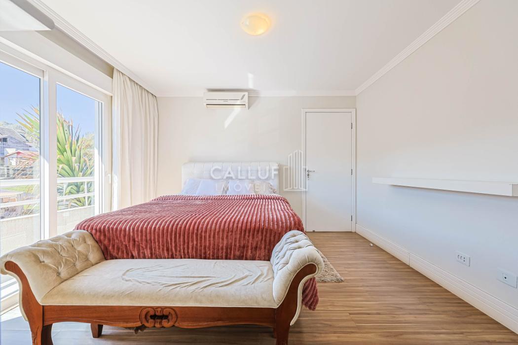 No piso superior, são 3 suítes confortáveis, todas com ar condicionado persianas automáticas e sacada, a suíte máster possui closet e banheira de hidromassagem. Neste mesmo espaço temos uma sala de estar íntima com lareira ecológica e uma vista lista para a área da piscina.