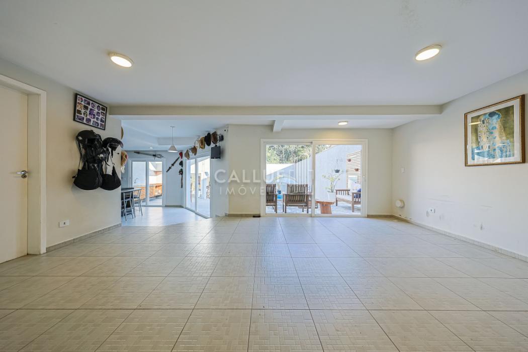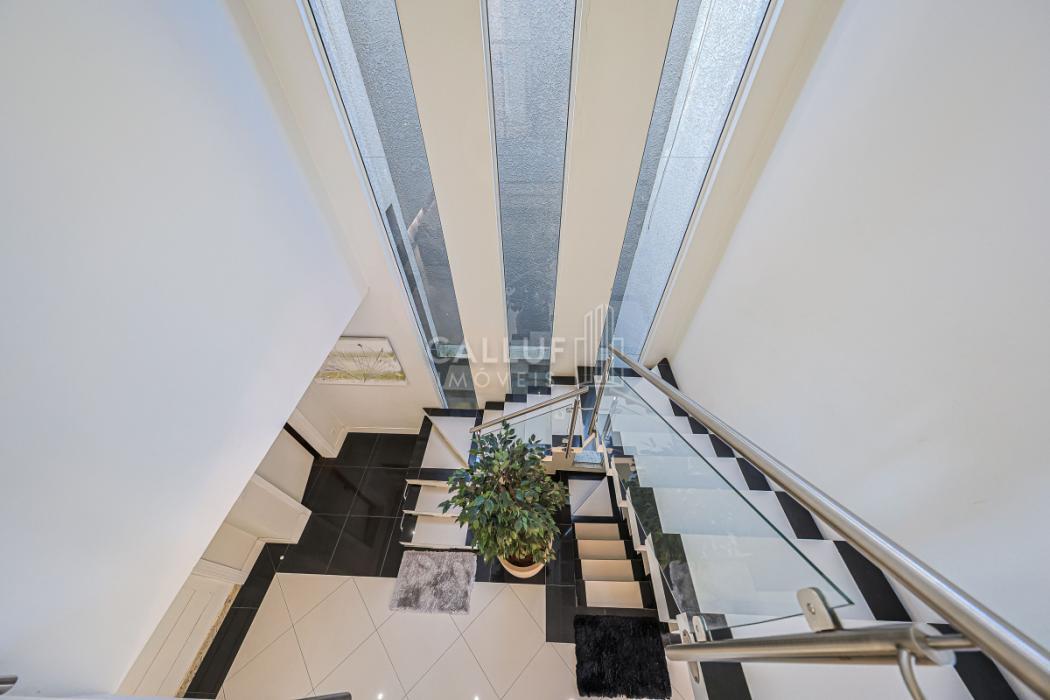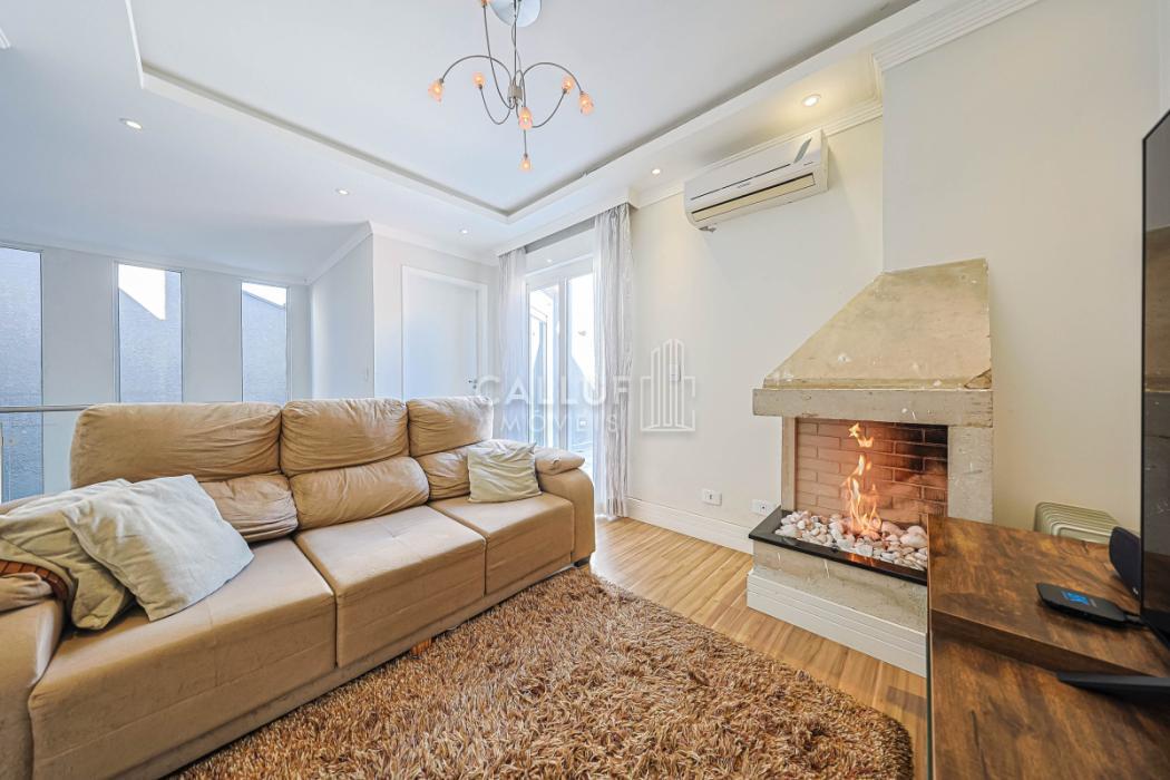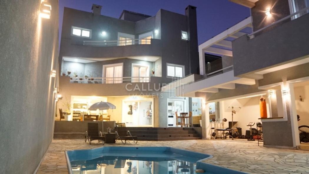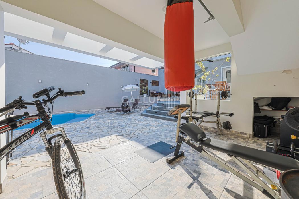 No piso inferior, um verdadeiro espaço de lazer e convivência! Destaque para a área gourmet com churrasqueira, forno à lenha e lavabo. A piscina, com aquecimento elétrico, permitindo a utilização por todo o ano, conta com banheiro exclusivo. Um cantinho especial com lareira externa à lenha torna os fins de tarde ainda mais agradáveis. Há também uma academia, lavanderia independente e um escritório versátil, ideal para home office, sala de jogos ou até mesmo um estúdio de música.