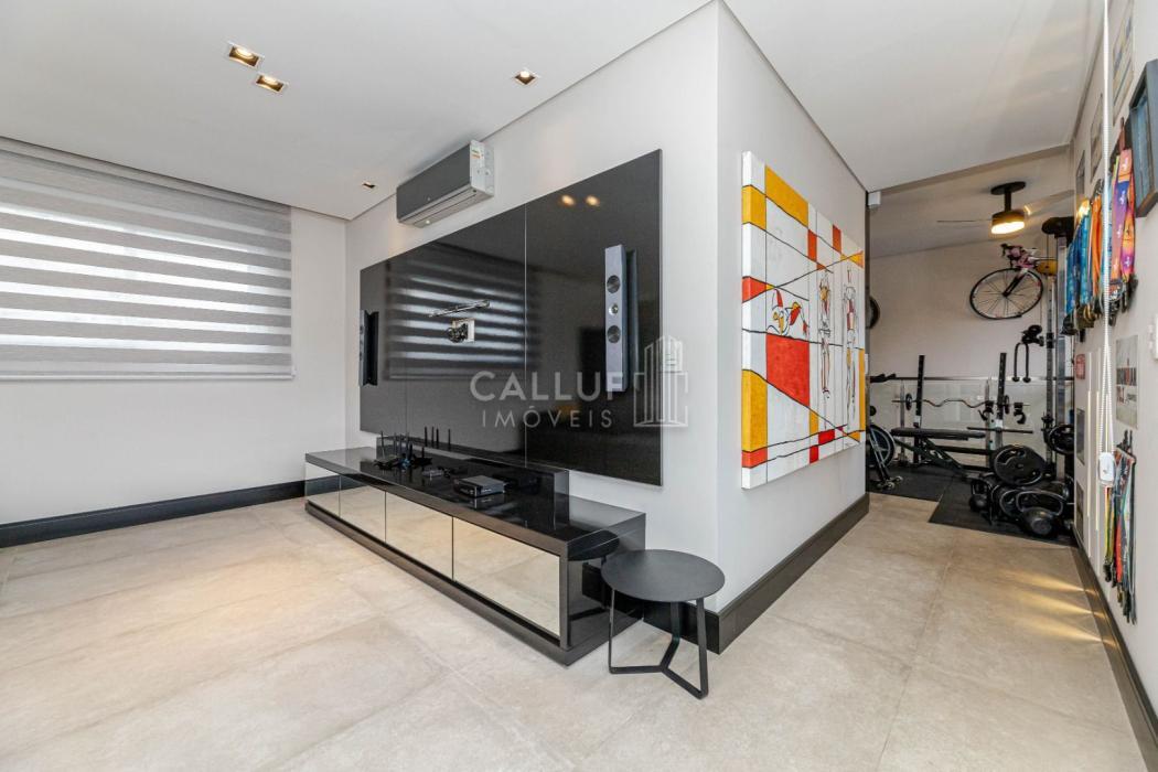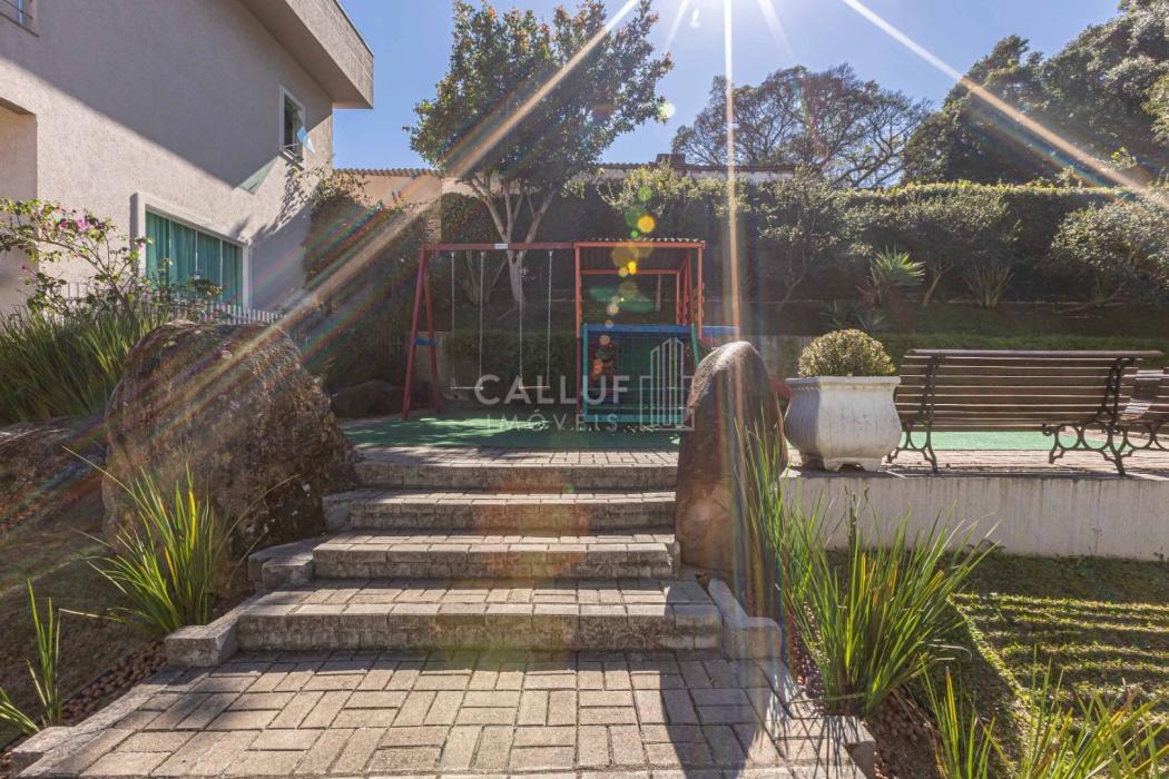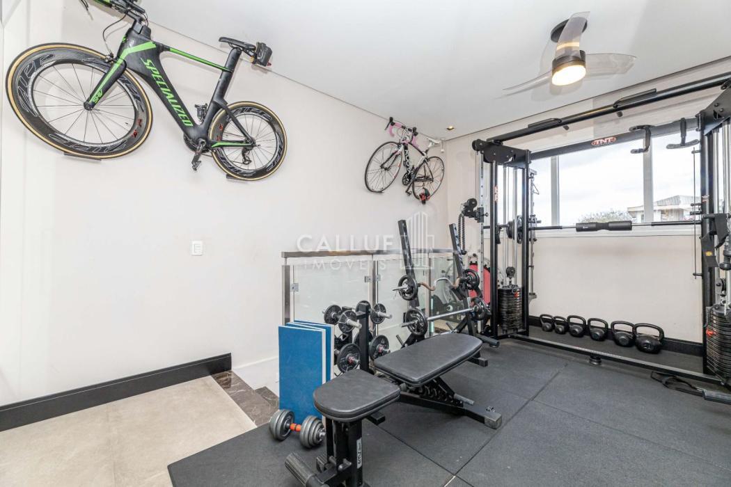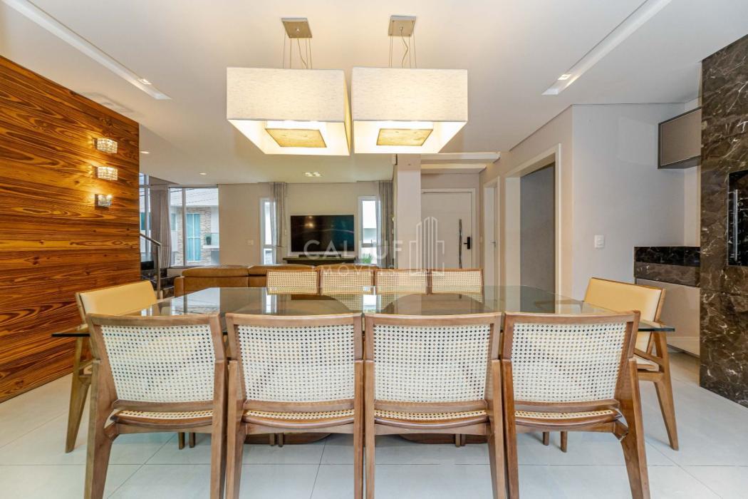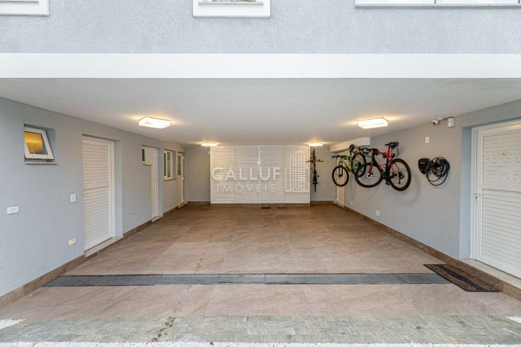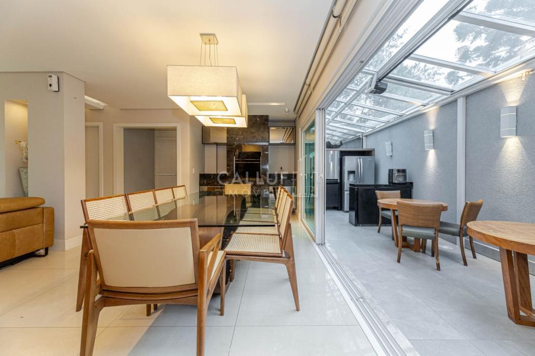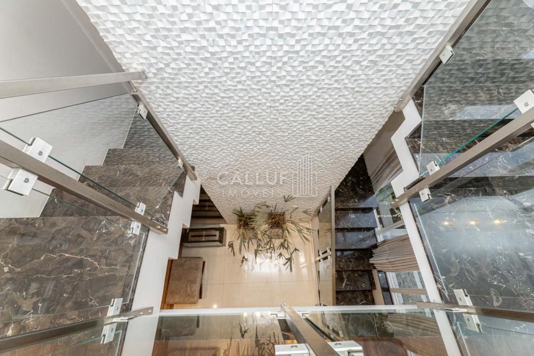 Térreo: Um espaço integrado com pé-direito duplo que proporciona amplitude e luminosidade à sala de jantar e à sala de TV. Jardim de inverno (atualmente espaço pet), lavabo, cozinha planejada com armários e tampo em granito, despensa e churrasqueira coberta com teto de vidro retrátil, perfeita para receber amigos em qualquer estação.