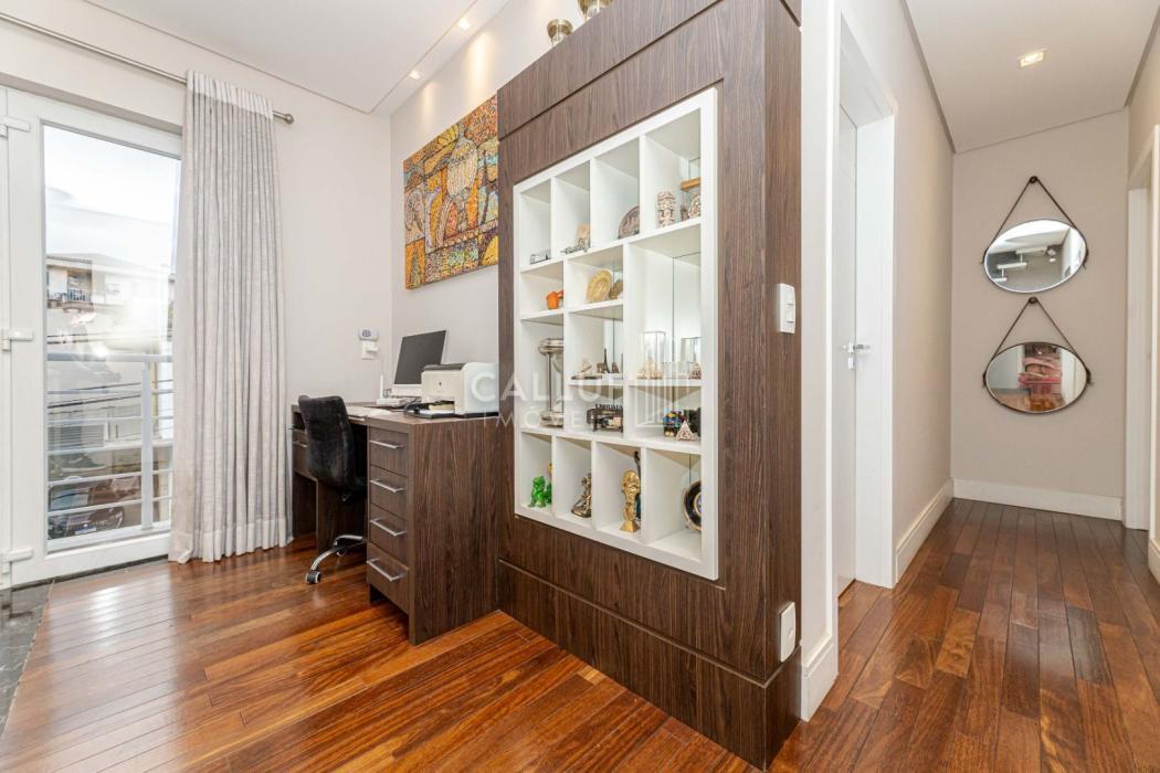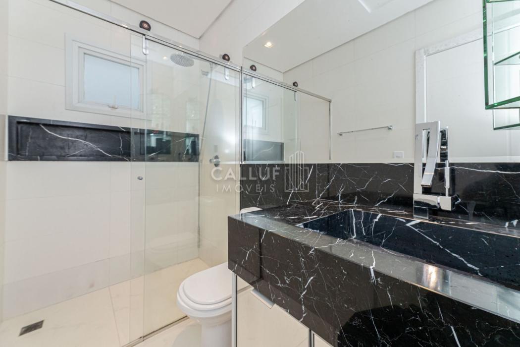2º Pavimento: Home office, 2 demi-suítes com armários e banheiro com duas cubas, além de uma suíte master com closet e banheiro com hidromassagem.