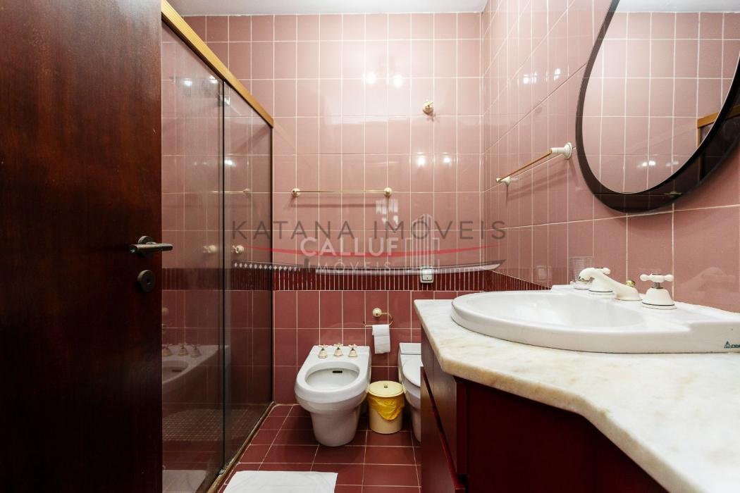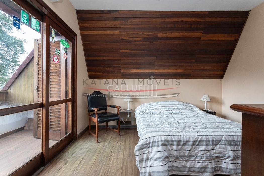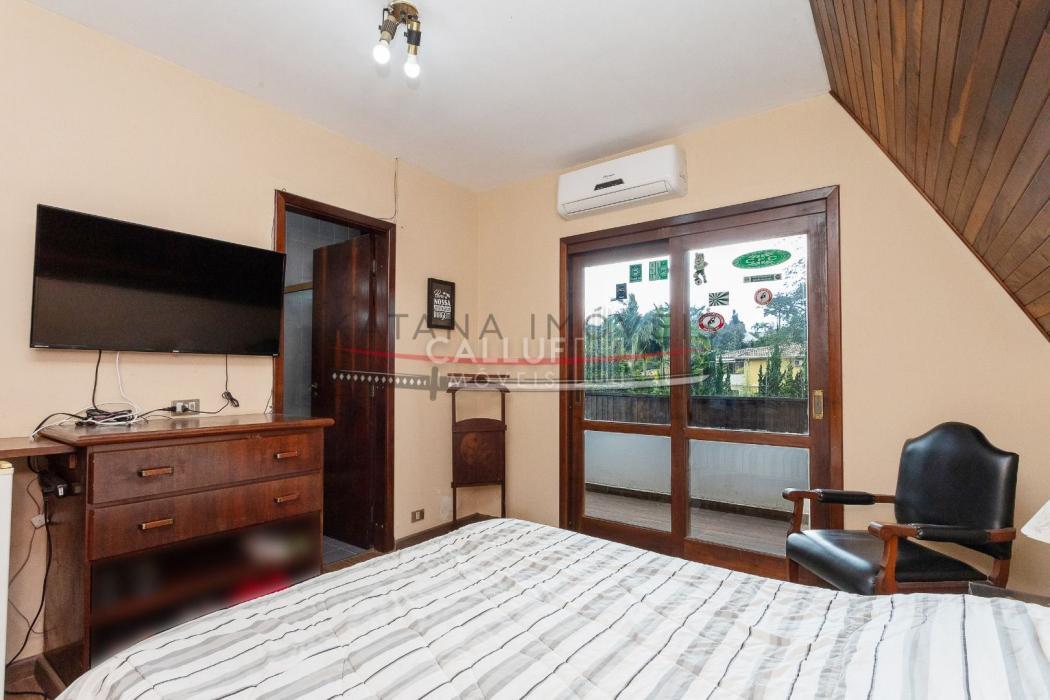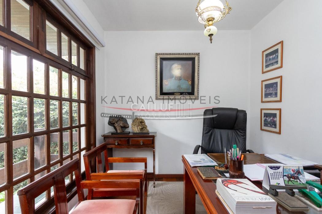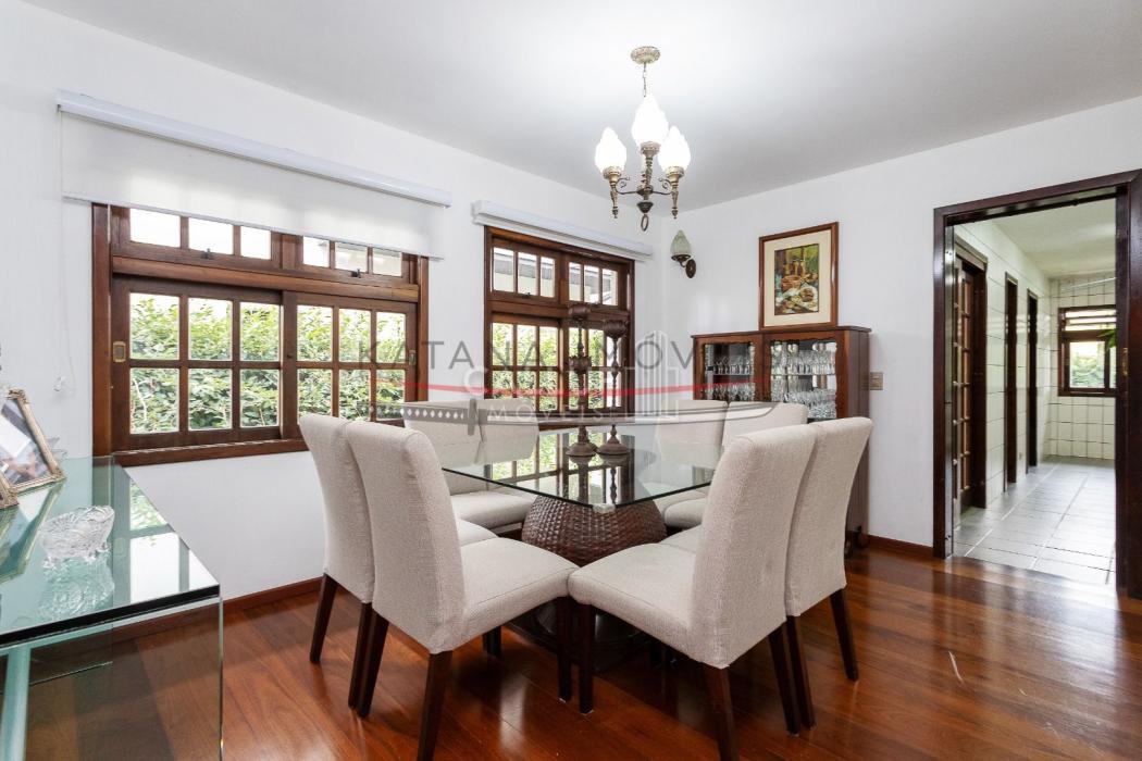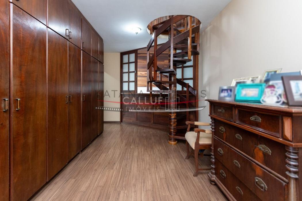 São 4 andares, tendo no primeiro piso ampla garagem, churrasqueira, salão de festas e um terreno com área verde extremamente ampla, com uma casa aos fundos (casa para caseiro, atelier) com 80m² e um depósito de 20m². No segundo piso temos salas amplas, escritório, cozinha, lavanderia e área de serviço. Os 4 quartos, sendo 3 suítes e uma demi ficam no terceiro piso, com uma linda sacada e vista panorâmica. No 4° andar temos o ático, com 85m². A metragem do restante da casa soma 415m².