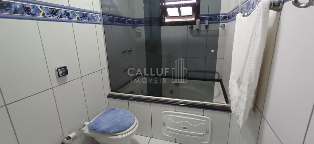 Uma ampla casa - 2 pavimentos -com 4 quartos, sendo 1 deles suíte com hidromassagem.