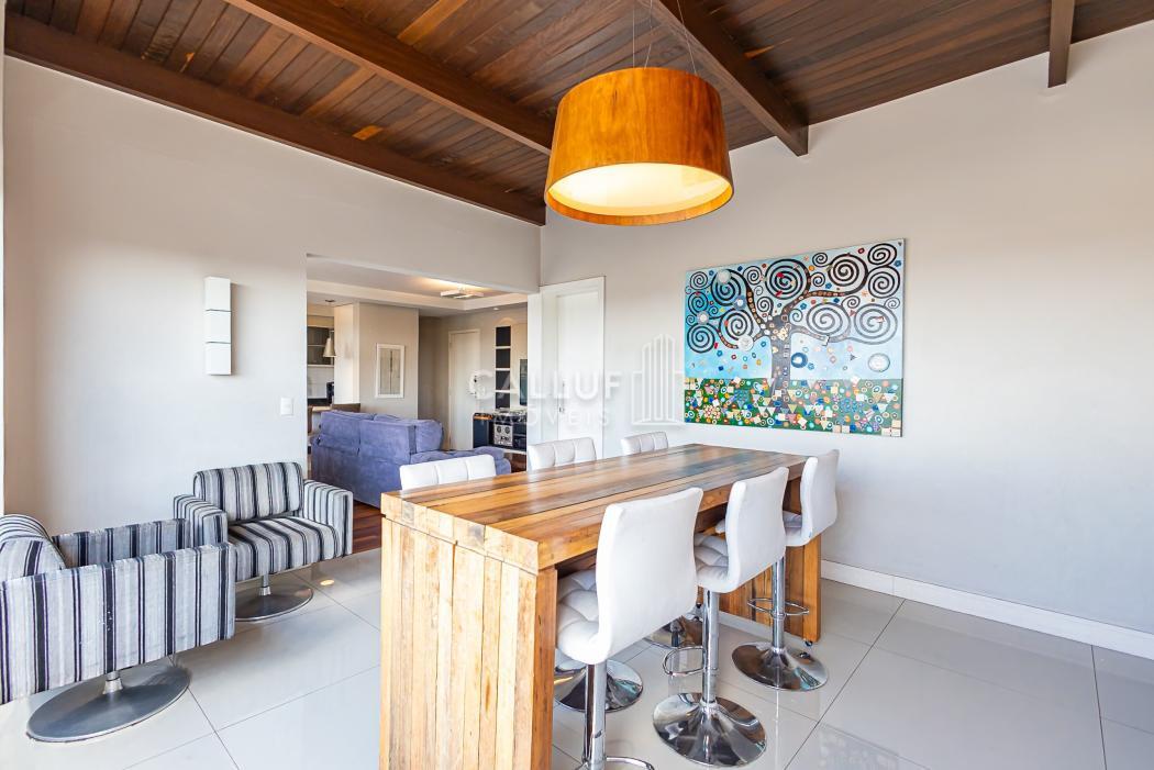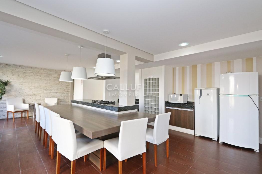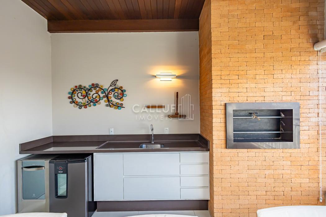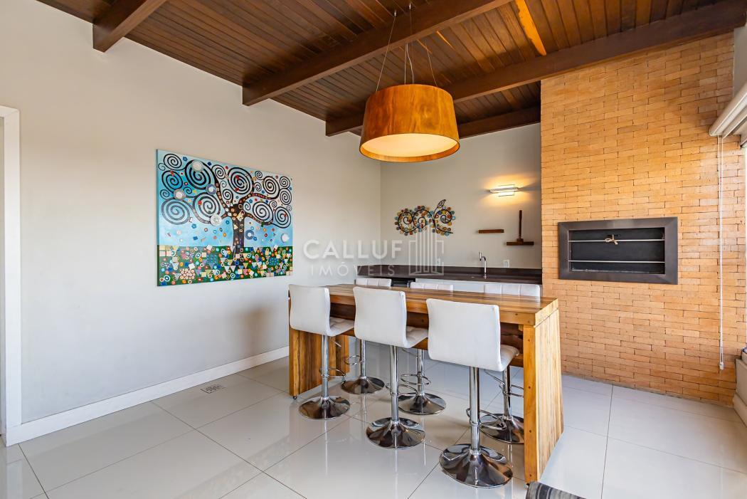 APARTAMENTO:- Cobertura linear (tudo em um pavimento);- 3 Dormitórios, sendo 1 suíte;- Suíte com closet;- Banheiro social e lavabo;- Sala para 2 ambientes;- Varanda gourmet ampla e coberta, com fechamento em Reiki;- Churrasqueira à carvão;- Cozinha semi integrada;- Área de serviço;- 2 Vagas de garagem (vagas paralelas e cobertas).