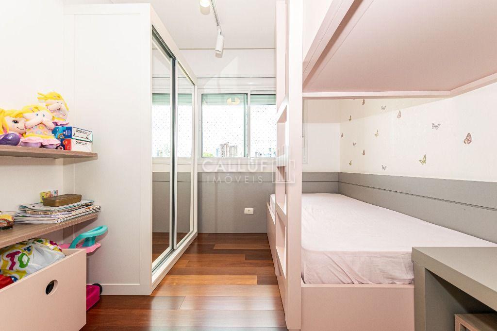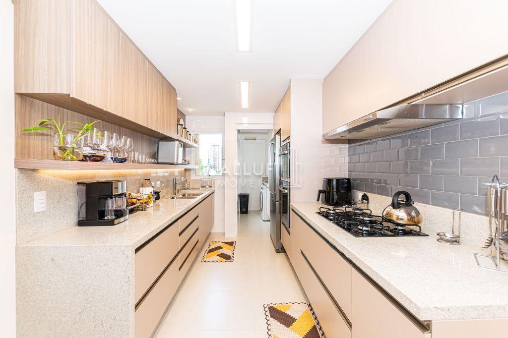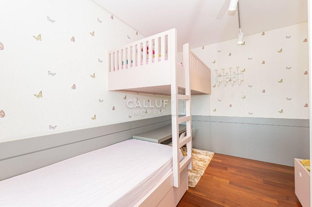 No piso inferior, ambientes amplos e bem distribuídos: sala espaçosa para vários ambientes, lavabo decorado, cozinha confortável com móveis planejados e excelente aproveitamento de espaço. Quartos bem definidos, sendo a suíte com amplo closet. Ambientes climatizados com ar-condicionado e iluminação natural abundante.