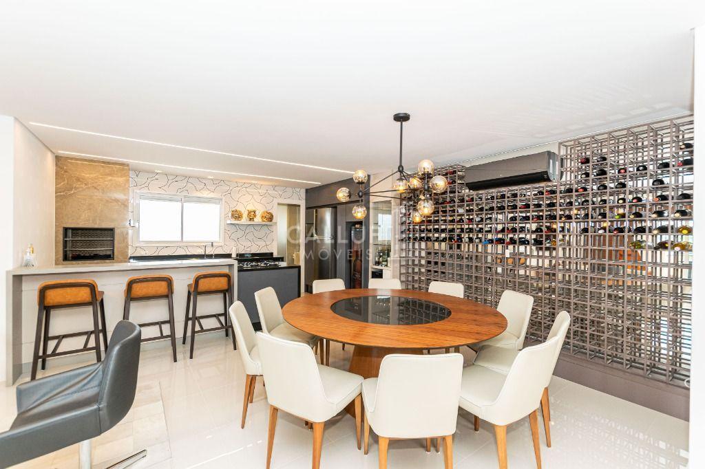 No piso superior, um verdadeiro espaço de convivência: área gourmet completa, churrasqueira, adega e muito espaço para receber amigos e familiares com conforto e privacidade. Elevador atendendo os dois pavimentos, trazendo praticidade e exclusividade ao dia a dia.