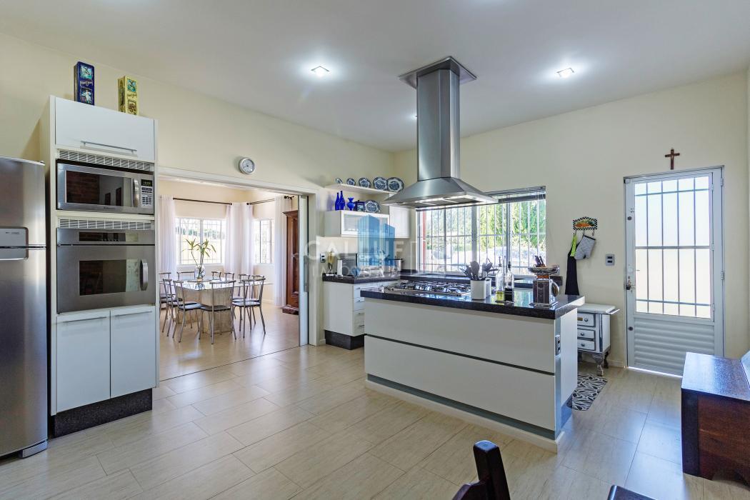 Casa principal de alvenaria com 330 m², composta por 4 dormitórios, sendo 2 suítes, uma cozinha ampla e equipada, e uma espaçosa sala de estar com lareira, oferecendo conforto e aconchego.