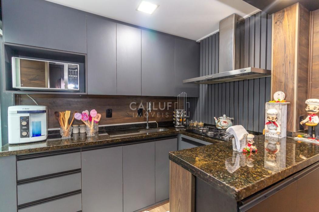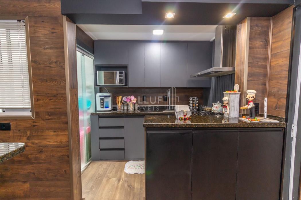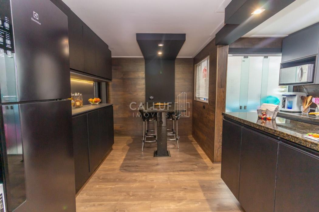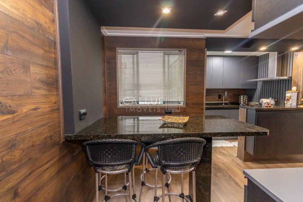 Cozinha toda planejada, sala de jantar integrada e mesa com 4 banquetas;