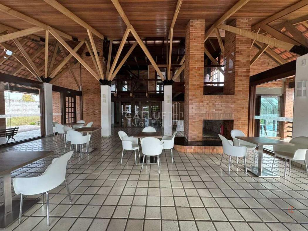 Na área social, a integração entre cozinha, sala de jantar e espaço gourmet com churrasqueira cria um ambiente moderno, funcional e acolhedor. O living amplo, ideal para estar ou home theater, também possui infraestrutura para ar-condicionado.