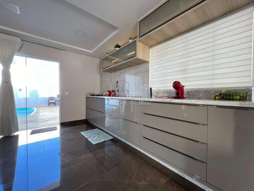 Nos fundos, o espaço gourmet integrado à piscina cria o cenário ideal para receber amigos e familiares, proporcionando momentos de lazer e descontração.