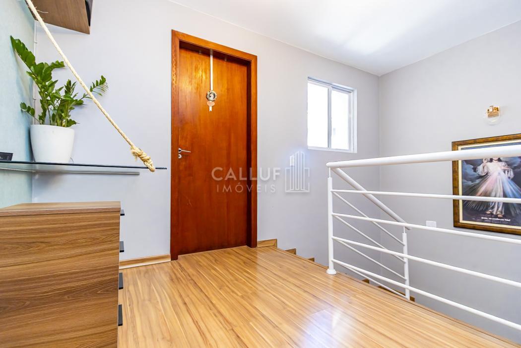 No pavimento superior, a área íntima oferece três dormitórios, sendo uma suíte, além de banheiro social. O hall entre os quartos permite a criação de um pequeno home office, espaço de leitura ou área de apoio, trazendo versatilidade à planta e acompanhando as necessidades atuais de trabalho e estudo em casa.