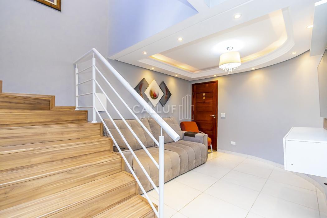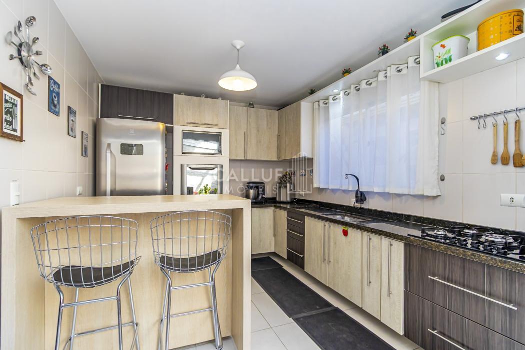 No pavimento térreo, a sala de estar é separada da sala de jantar, criando áreas sociais distintas e mais agradáveis para convivência. A cozinha com armários planejados entrega praticidade no dia a dia e aproveitamento inteligente do espaço. O lavabo complementa a área social, atendendo visitas com comodidade.