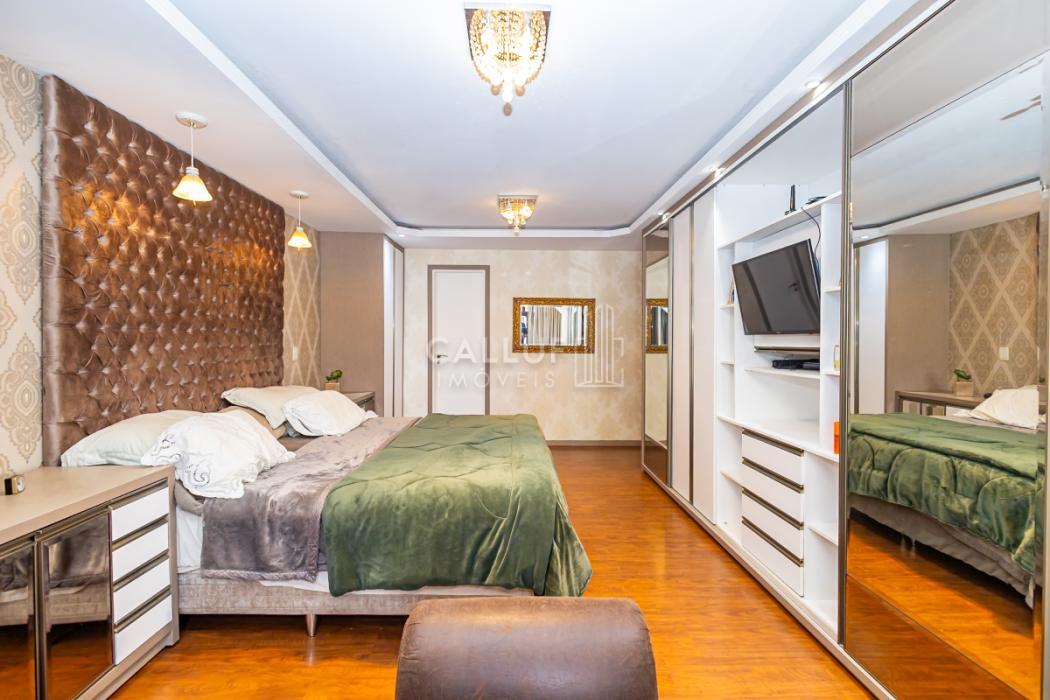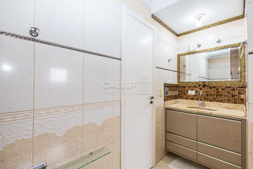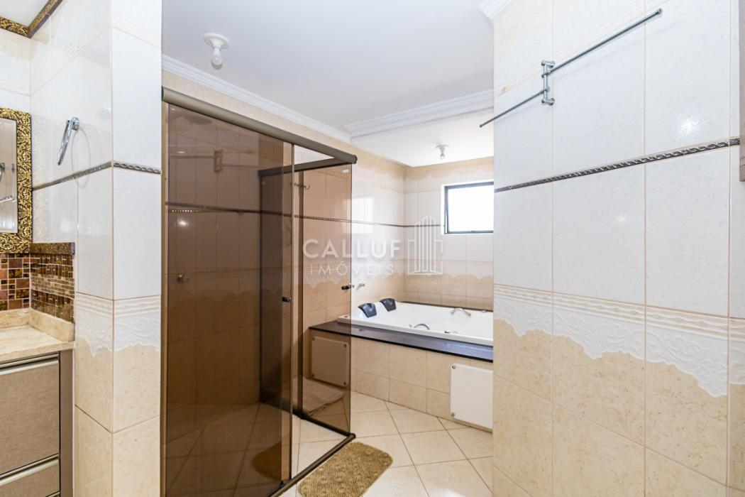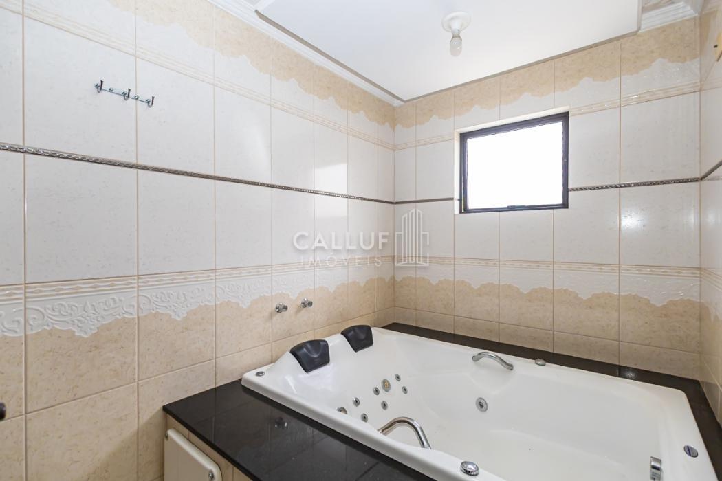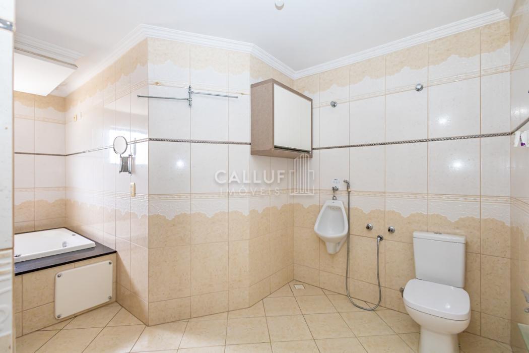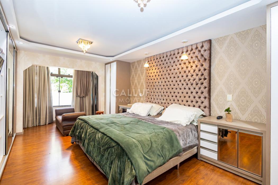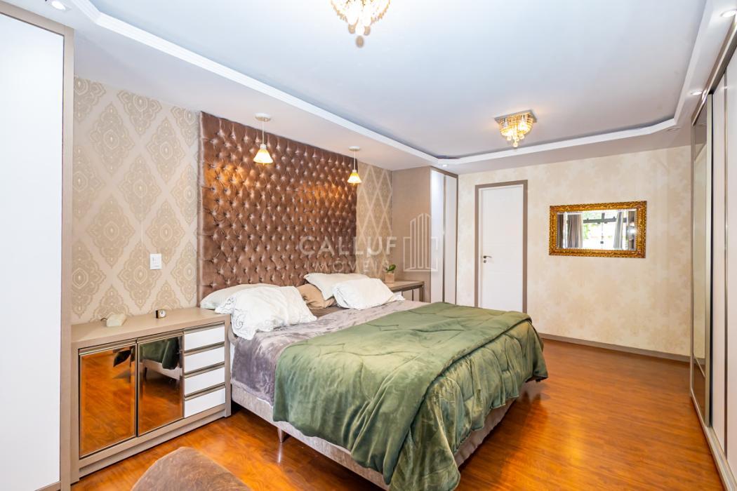 - Suíte 1: ampla suíte master com banheira de hidromassagem, ótima iluminação natural, piso em madeira, móveis planejados, papel de parede de alta qualidade, forro de gesso com projeto luminotécnico com spots e luminárias pendentes.