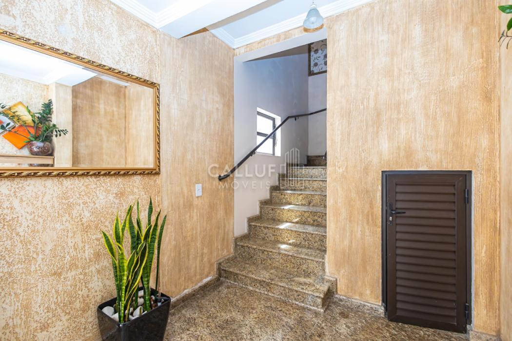 - Hall de entrada decorado para o piso superior, iluminação natural, escada em granito, depósito de lixo.