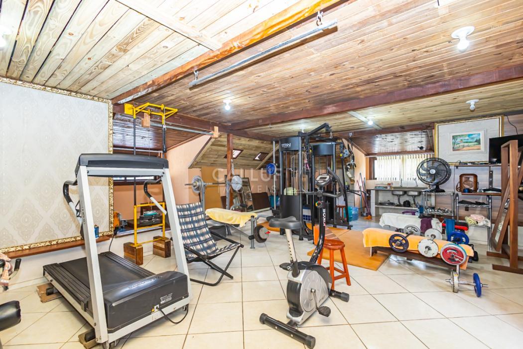 - Amplo ático com piso em porcelanato e forro de madeira. Atualmente é utilizado como academia.