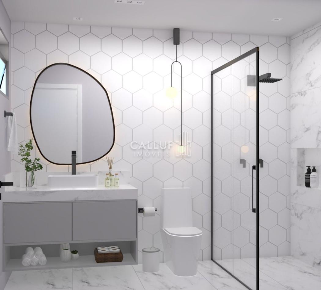 Acabamentos de alto padrão, como pisos 90x90cm, louças e metais premium.