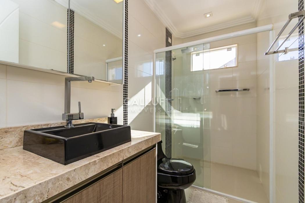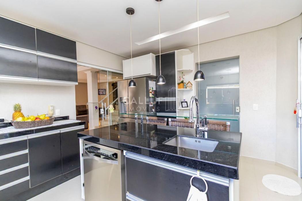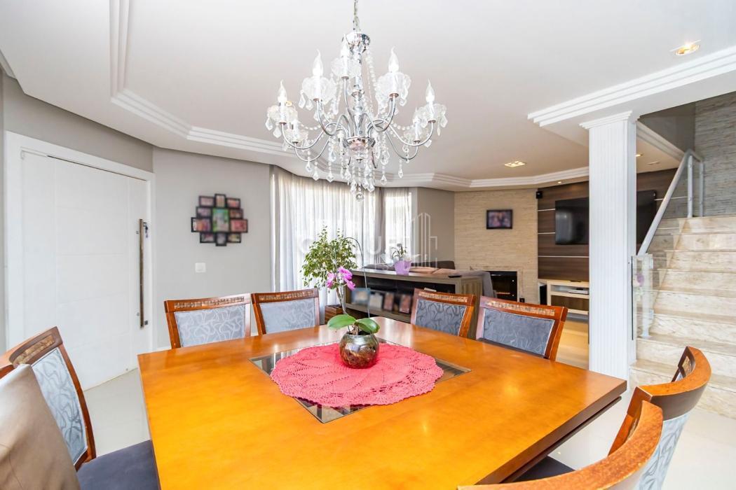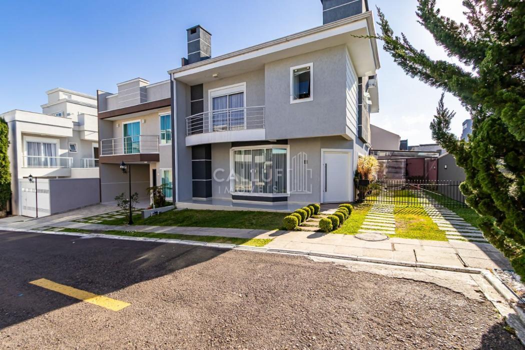Excelente sobrado ensolarado, padrão diferenciado, com um ótimo terreno e localizado no Uberaba dentro do Residencial Zandoná. Para quem busca segurança, conforto, requinte, esta é a oportunidade de conhecer este imóvel com 236m2 de área construída, sendo 167m2 averbados. No piso térreo teremos uma sala ampla para 02 ambientes, lavabo, depósito abaixo da escada, cozinha mobiliada, área de serviço com armários, um aconchegante e espaçoso salão com churrasqueira, banheiro e mais um espaço externo. No piso superior teremos 3 amplos dormitórios com armários planejados, sendo um deles suíte com sacada , closet e hidromassagem. O sobrado possui uma ótima incidência do sol da manhã e tarde. O condomínio tem uma área comum bastante ampla, com quadra de futebol, pergolado e mais o playground. Possui portaria remota. Está numa localização muito boa, com um vasto comércio nos arredores, incluindo o hipermercado Condor. Tem rápido acesso para o aeroporto e saída para o litoral do PR e SC. O imóvel pode ser financiado. Agende uma visita com um dos nossos corretores e venha encantar-se. Aguardamos seu contato.