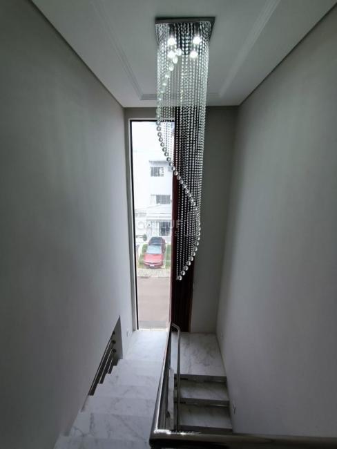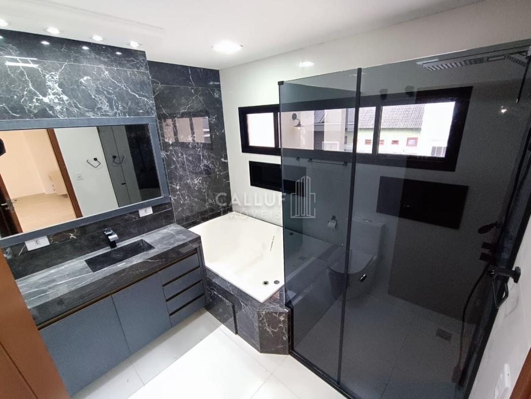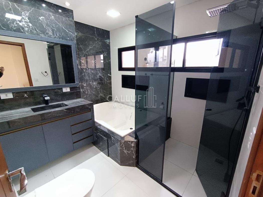 Acabamentos em porcelanato e laminado, escadas esculpidas, móveis planejados, iluminação em gesso, banheiros com espelhos, gabinetes e metais de alto padrão. Sistema de aquecimento a gás com água quente em todos os banheiros, cozinha e churrasqueira. Esquadrias pretas, janelas Glazing, portas e caixilhos duplos/triplos.