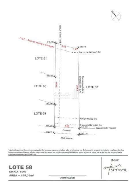 Lote nº 58 com 195,39 m² de área privativa do lote, área total de 635,76 m2